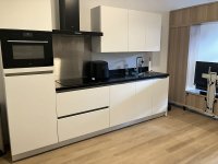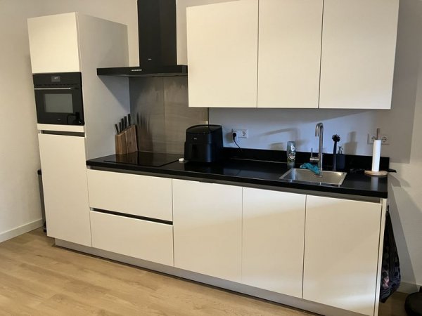 - Luxe mat witte keuken met alle apparatuur en composiet werkblad