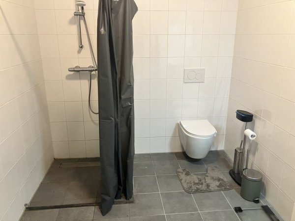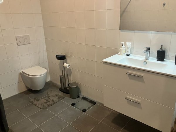- Badkamer met inloop douche, zwevend toilet, wastafel met spiegelkast