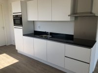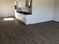 HET APPARTEMENT IS VOORZIEN VAN EEN LUXE KEUKEN, LUXE BADKAMER, FRAAIE PVC VLOER EN STRAKKE WANDAFWERKING.
